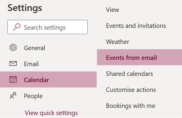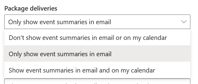 Select the desired settings; this way, you can also prevent Outlook from automatically adding events to your calendar or from receiving information as email at all.