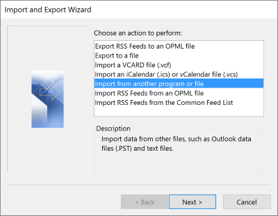 - – In Outlook 2013 and 2016 go to File > Open & Export > Import/Export.