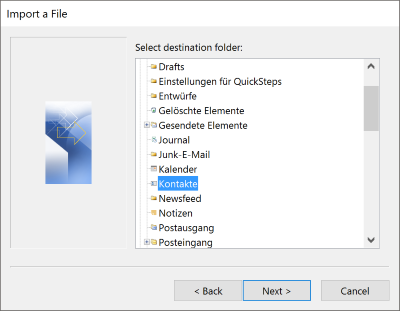 Check the box in front of ‘Import <CSV-file name> into Folder: Contacts’.