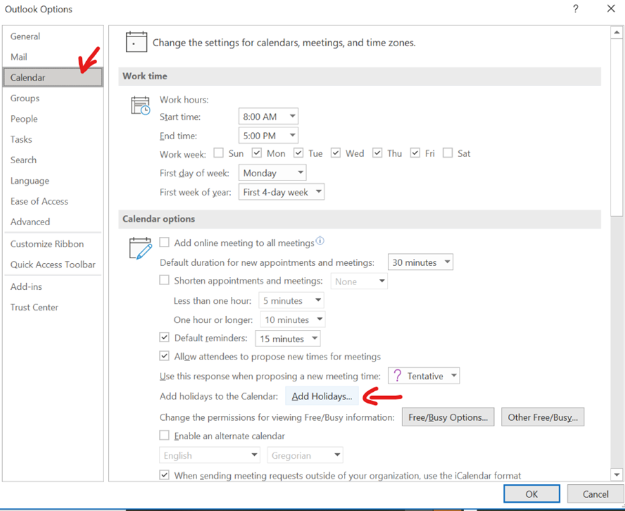 Make sure to install the latest updates before importing your holidays, as Microsoft uses regular Office updates to update, include, or remove existing ones. Depending on the Outlook version, there are differences in which year Outlook shows the holidays in your calendar.