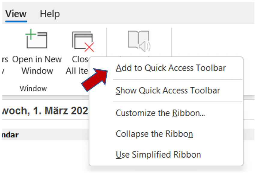 Simply navigate to the “View” tab and right-click on the “Close All Items” command. Then, select “Add to Quick Access Toolbar”.