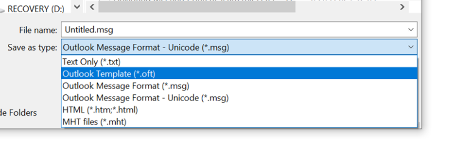 Step 6: Click on the Save as type drop down arrow, then select Outlook Template (*.oft).