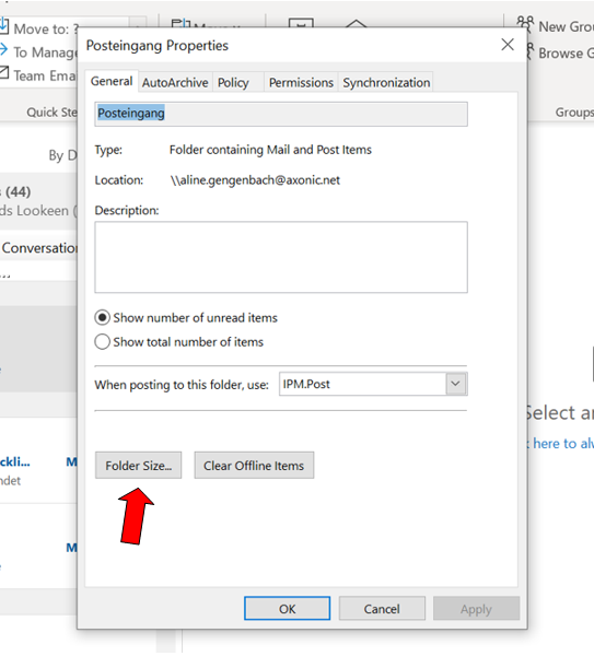 Step 2: Click the Folder Size field in the new window. Outlook now lists all folders and sub-folders in your mailbox by name. Once you have found the folder you are looking for in the list, you only have to look at the folder path and you will already know where the missing folder has ended up.