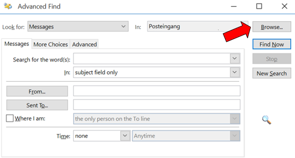 Thanks very very much!!! It is a shame for Outlook that this is the only way to find a folder in it by name. You can search for mails with words within mails and you get the proper mails together with its last(!!!) folder – that is with the name of the last folder in the folder chain it is in. However you can not locate this very last folder easily or even at all if this happen to be a sub-sub-sub.. folder among plenty of folders as at me! Why???