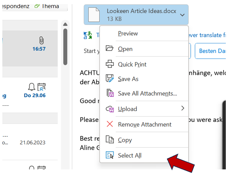 Step 3: Copy the attachments with the corresponding key combination or right-click again and choose “Copy” from the drop-down menu.