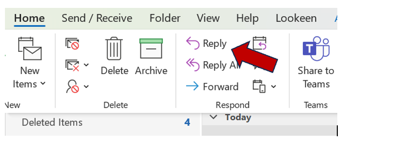 Step 4: Select the “Reply” button on the “Home” tab or toolbar.