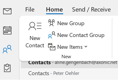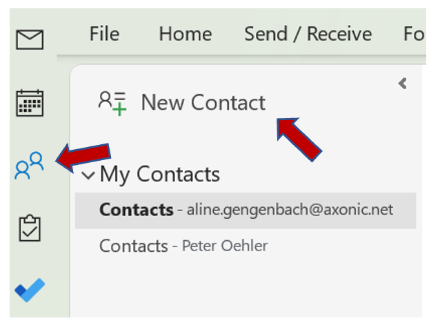 Note: If a person you’d like to add to your contacts sent you an email, you can store the contact’s information directly from your inbox. Click on the corresponding name and click “Add to Contacts” in the “Contact” tab in the ribbon.