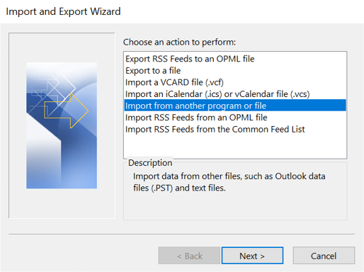 Step 2: In the next step, select the Import from another program or file box.
