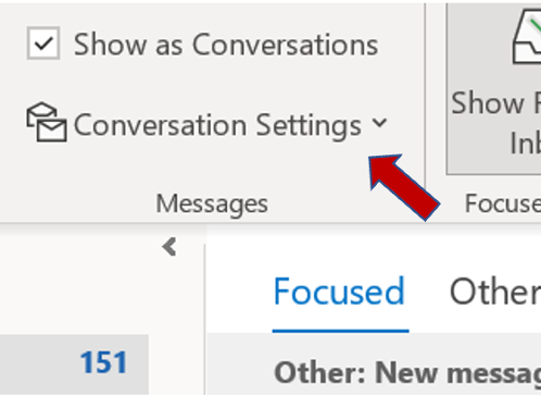 When you select the conversation view in Outlook, you will notice an arrow to the left of the most recent conversation message. By selecting the arrow, you can expand the message to include the entire conversation. Unread messages will appear in bold.